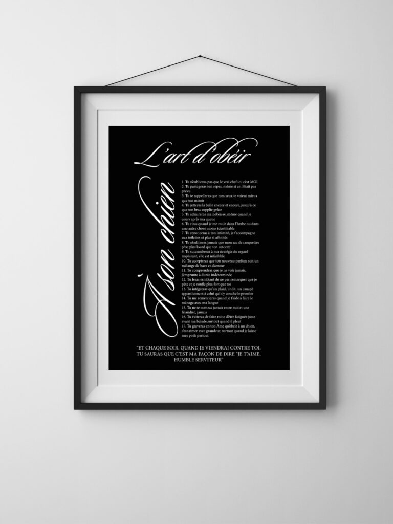 Affiche noire version anglaise : L’art d’obéir à son chien