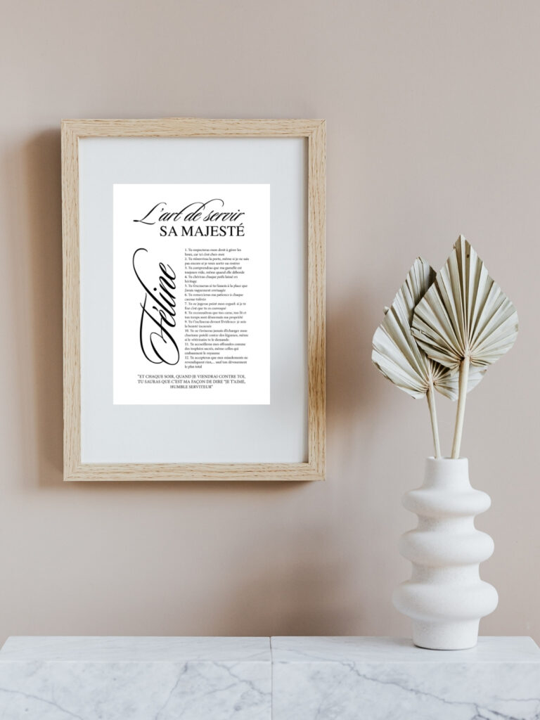 Affiche blanche version française : L’art d’obéir à sa majesté féline