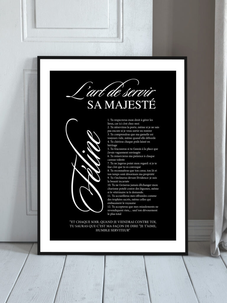 Affiche noire version anglaise : L’art d’obéir à sa majesté féline