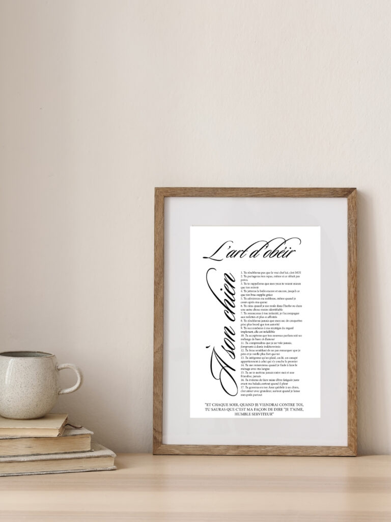 Affiche blanche version anglaise : L’art d’obéir à son chien